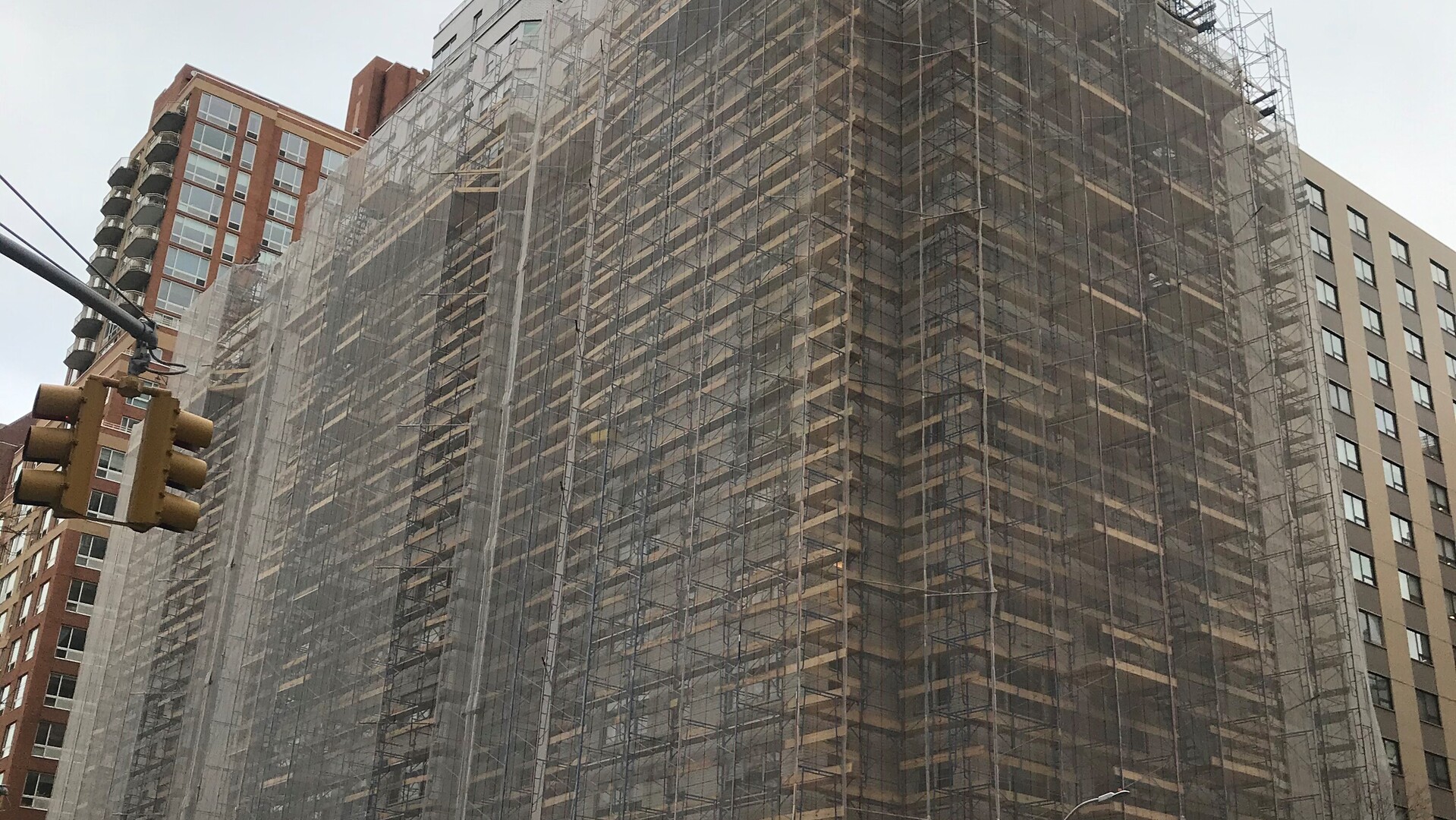 The original building design prioritized comfortable units with large, spacious rooms in keeping with the upscale neighborhood. But the economy of means also dictated a purely functional design of the façade. As the building aged, façade safety inspections required by New York City’s Building Code uncovered structural and masonry failures that required repairs at significant cost and inconvenience to the building’s residents. Façade probes showed that the exterior had no insulation at all, and that in addition to the failing glazed face-brick, the back-up masonry had been poorly installed. In short, the façade was failing. By 2018 it became clear that a full façade recladding was in order. A new architectural team was brought in to design new cladding for the building; they used the opportunity to also recommend a complete retrofit of the building envelope.