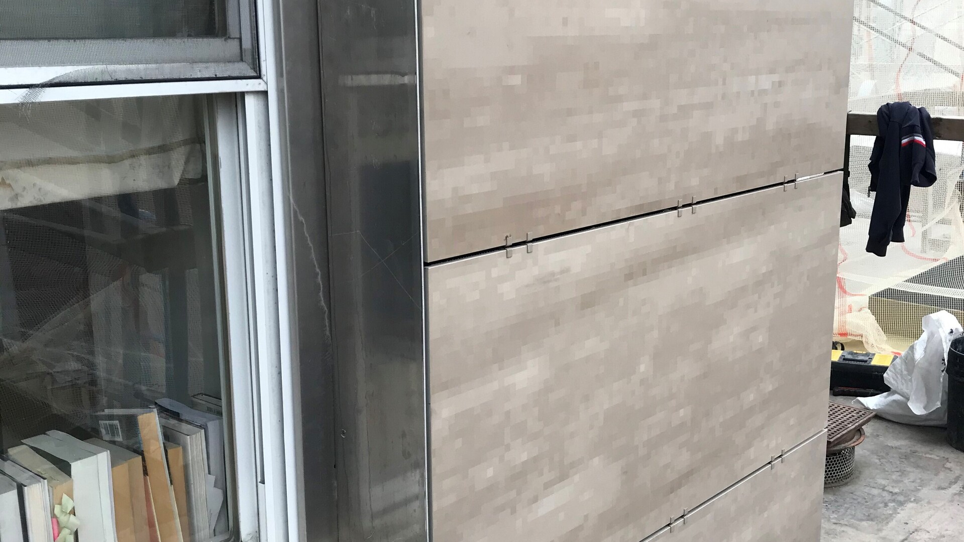 There were multiple challenges facing the architects, on both the technical and design fronts. First, Rogers Partners knew that removal of the brick offered a chance to repair the holes in the deteriorating concrete block back-up that provided little to no protection from the elements or busy city streets. It was not uncommon for residents to feel drafts through electrical outlets and around windows, and exterior noise was also a regular complaint. Second, the retrofit was funded by the building’s owners; it was a substantial investment, so compromises were made to stay within the budget. One of those compromises was windows would not all be immediately replaced—that decision was left up to the individual owners—so the new window trim would need to be constructed in such a way to accommodate window replacement at a later time. The fact that the building was occupied also came with challenges, since all demolition and new construction had to be achieved from the outside in order to minimize disturbance to the unit owners. And critically, ownership had raised real concerns about flammability issues associated with early generation rainscreen systems that left occupants vulnerable in the event of fire.